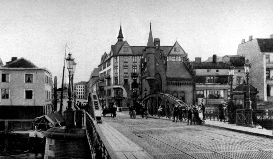 Итак, самым старым был мост Лавочный (Кремербрюкке). Его построили в 1286 году по инициативе бургомистрата Альтштадта (только что получившего городские права). Связывал он Альтштадт с островом Кнайпхоф, на котором ещё не было городского поселения.