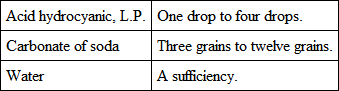 The above quantities are sufficient for one pill, four of which are to be given daily for a week, at the expiration of which period the increase may begin. If the above, after a fair test has been made of it, does not succeed, trial may be instituted of the nitrate of silver, the trisnitrate of bismuth, or any of the various drugs said to be beneficial in the disease, or of service in stomach complaints. In this disorder the same drug never appears to act twice alike, therefore a change is warranted and desirable.