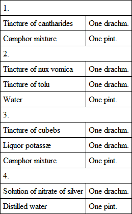 Any of the above may be employed, from a tablespoonful to a common wine-glass full being used for a dose. The pile ointment will likewise be beneficial, by facilitating the passage of the fæces, allaying local irritability, and correcting that tendency to piles which is generally attendant upon, if not the original cause of the affection.