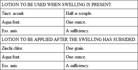 It is well to bathe the fractured limb, splints and all, in the following lotions: —