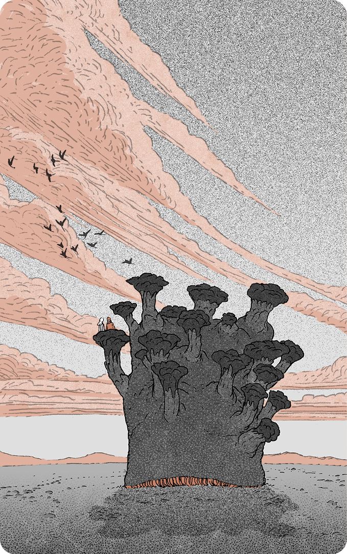 Она смотрела, как озеро исчезает за горизонтом: дерево медленно ковыляло вперед. Девочка надеялась увидеть мант-бегунов, но их уже нигде не было.