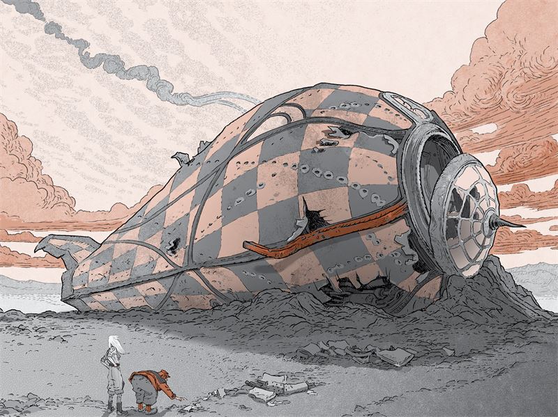 Прошло уж несколько дней с момента крушения «Бижу» посреди равнины. Несмотря на это, когда бродячее дерево добралось до места, струйки дыма все еще вились над кораблем. Пузатый корпус, лежащий на правом борту, возвышался над плоской песчаной равниной. В обгорелой обшивке тут и там зияли отверстия от пуль. Выпуклое лобовое стекло в носовой части вывалилось из креплений. Когда подошли ближе, Зиа увидела, как сквозь дыры в стекле влетают и вылетают некие создания размером поменьше вертиплавников.