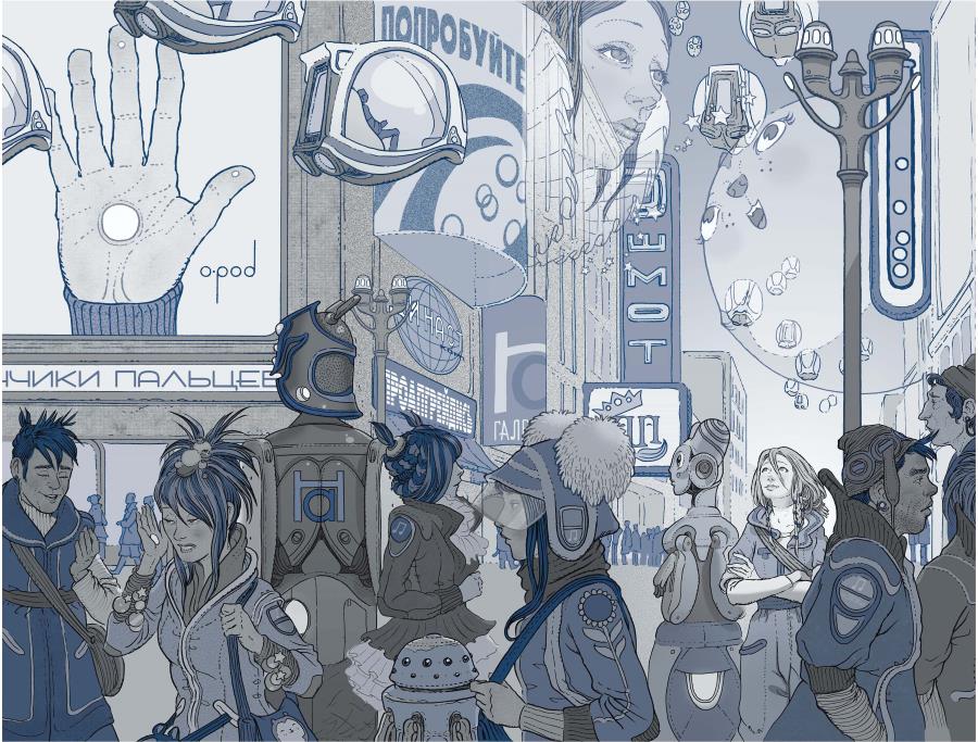 На входе в Новую Аттику Зию и Хейли встретила музыка в стиле эмбиент[3] и мелодичное птичье пение. Безоблачное лазурное небо проецировалось на высокую атмосферную мембрану, куполом укрывающую несколько ярусов кубических модульных домов, которые оплетали городскую стену по кругу. Расположенные ступенями жилища с панорамными окнами образовывали по форме своеобразный карьер. На разных уровнях по воздуху сновали сферические гондолы с пассажирами внутри. Куда бы Зиа ни кинула взгляд, везде гуляли, играли и болтали горожане. Встречались люди с темной кожей, с оранжевой и даже сиреневой. Ни у одного из них не было ни морщин, ни шрамов, как у Ван Тернера, и никто не выглядел старым. Слезы навернулись на глаза Зии, и она прошептала сама себе: