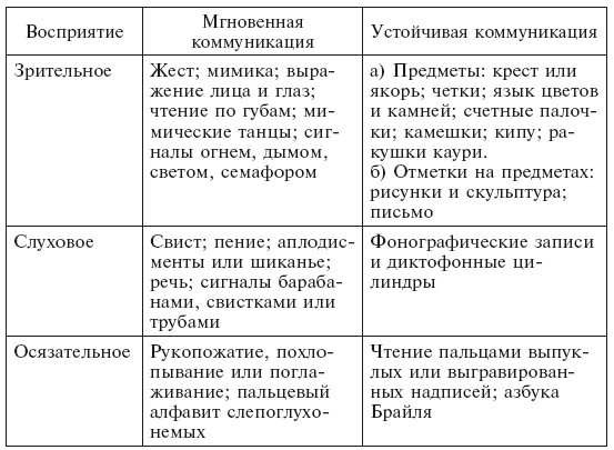 На рис. 1 в виде таблицы показаны несколько различных способов коммуникации, доступных человеку.