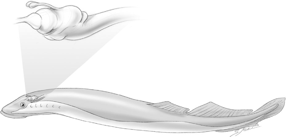 Рис. 6. Речная минога, Lampetrafluviatilis, и ее мозг.