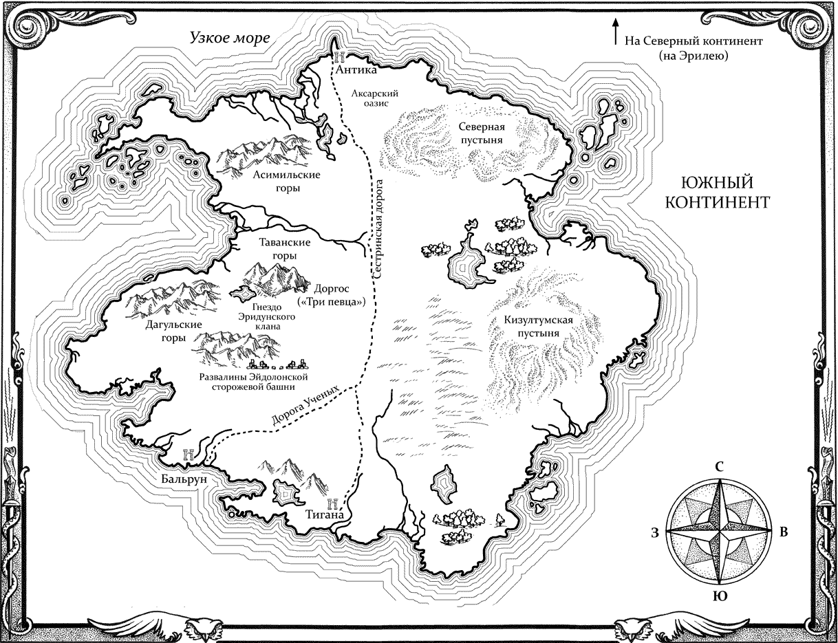 Мозаичные картины, вкрапленные между зеленым мрамором пола, создавали ремесленники Тиганы – весьма ценимого хаганом города на южной оконечности континента. Каждая представляла сцену из богатой событиями, жестокой и славной истории хаганата. Начало ее тонуло во тьме веков, когда далекие предки хагана веками кочевали по травянистым степям восточной части континента. Мозаики запечатлели появление первого хагана – военачальника, который объединил разрозненные племена, сделав их народом-завоевателем. С тех пор начался последовательный захват континента. Шаг за шагом, сочетая военную силу с проницательностью и умением мыслить стратегически, государство бывших кочевников превращалось в обширную империю. История последних трех веков представала в деяниях хаганов. Они продолжали дело предков, расширяя границы империи. Хаганы распределяли богатства, стекающиеся отовсюду, строили бесчисленные мосты и дороги – кровеносные артерии громадного континента, которым они управляли с ясным пониманием цели и точностью действий.