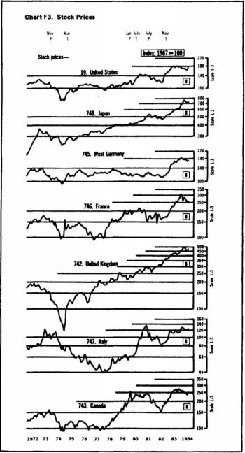 Принципы графического анализа применимы и на фондовом, и на товарном рынке. Собственно говоря, первоначально технический анализ использовался именно на фондовой бирже, а на товарную пришел несколько позднее. Но с тех пор, как появились срочные сделки на фондовые индексы (stock index futures), граница между фондовым и товарным рынками становится все более и более призрачной. Технические принципы также применяются и для анализа международных фондовых рынков (International Stock Markets) (рис. 1.2).