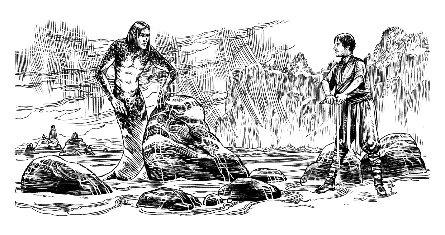 Юлиан махнул рукой, и что-то заскользило в бурной воде к берегу. Вместе с набежавшей высокой волной на каменистый пляж выползло создание, похожее на змею, однако с торсом человека.