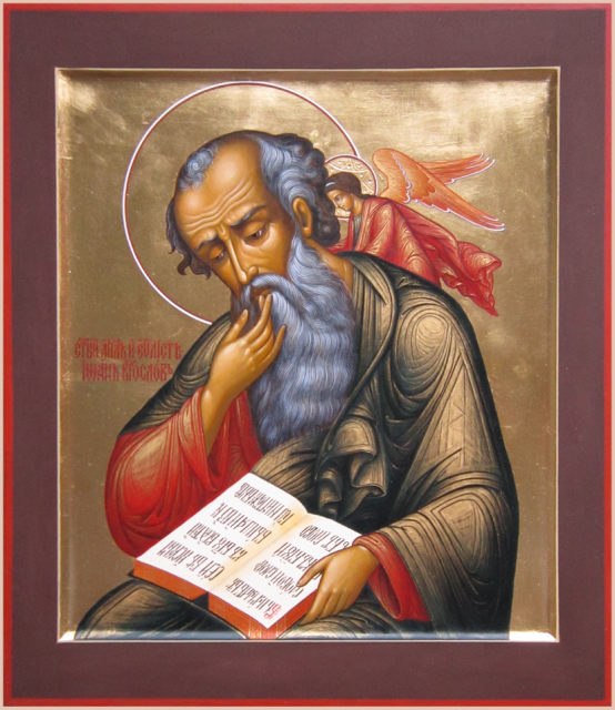 Образец золотого блика на одеждах. Икона Иоанн Богослов в молчании. Мастерская Виктора Юскова
