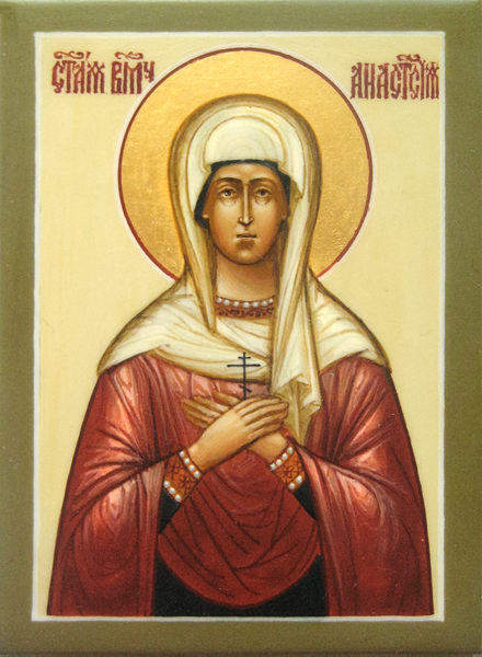 Образец красочного пробела на одеждах. Икона Анастасия Римская. Мастерская Виктора Юскова