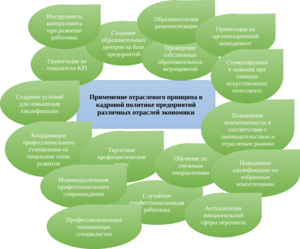 Обобщая подходы к реализации отраслевого принципа в структуре кадровой политики в разных отраслях экономики, представляется возможным представить их на Рисунке 1.