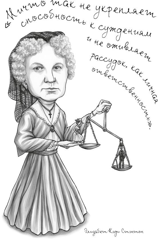 Но постепенно все начало меняться. Рабство было официально уничтожено, и к 1870 году «небелые мужчины и освобожденные рабы-мужчины» в США получили право голоса. Но не женщины, которые так и остались «собственностью» своих мужей или отцов. Считалось, что женщинам не нужно право голоса: ведь мужья и отцы, конечно же, проголосуют так, чтобы защитить их интересы. Кроме того, предполагалось, что женщины «самой природой» предназначены для домашних дел, не требующих особого ума и проницательности. В 1792 году писательница Мэри Уолстонкрафт выступила против: по ее словам, нельзя смотреть на женщин «как на вечных детей, не способных вести самостоятельную жизнь». В своей важнейшей работе «В защиту прав женщин» Уолстонкрафт попыталась доказать, что интеллектуальные способности женщин не слабее, чем у мужчин, просто их постоянно лишают доступа к образованию, которое дает знания и учит мыслить. Почему? Возможно, по политическим причинам: «Если вы укрепите женский ум, развив его, то это будет означать конец слепого повиновения, но власть всегда добивается слепого повиновения, и поэтому тираны и сластолюбцы стремятся оставить женщин в темноте невежества, – первым нужны только рабы, а вторым – игрушки для их забавы».