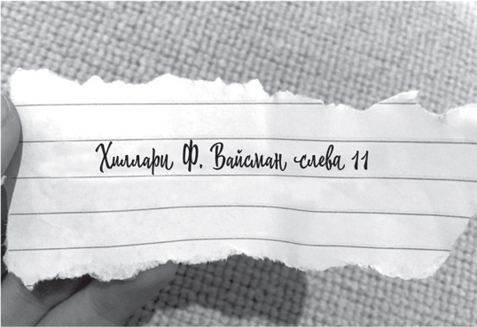 Пустой баллончик от дезодоранта. Скомканный чек на сэндвич с курицей и майонезом: покупка сделана в ближайшем супермаркете 24-го числа, во вторник, в 14:23. Пустая упаковка от кукурузных снеков в виде привидений, со вкусом маринованного лука. К внешней стороне упаковки, испачканной жиром, прилип небольшой листок бумаги, развернув который Пиппа увидела надпись синей шариковой ручкой: «Хиллари Ф. Вайсман слева 11».