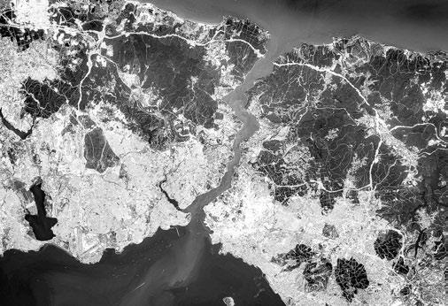 Теория об уровне моряХоть Эратосфену и удалось вычислить размеры Земли, его геологическая теория была довольно ограниченной. Нахождение ископаемых моллюсков на суше объяснялось тем, что когда-то уровень Средиземного моря был значительно выше и резко понизился, когда открылись два новых пролива: Гибралтарский, ведущий в Атлантику, и Босфор (на иллюстрации), который соединяется с Черным морем.