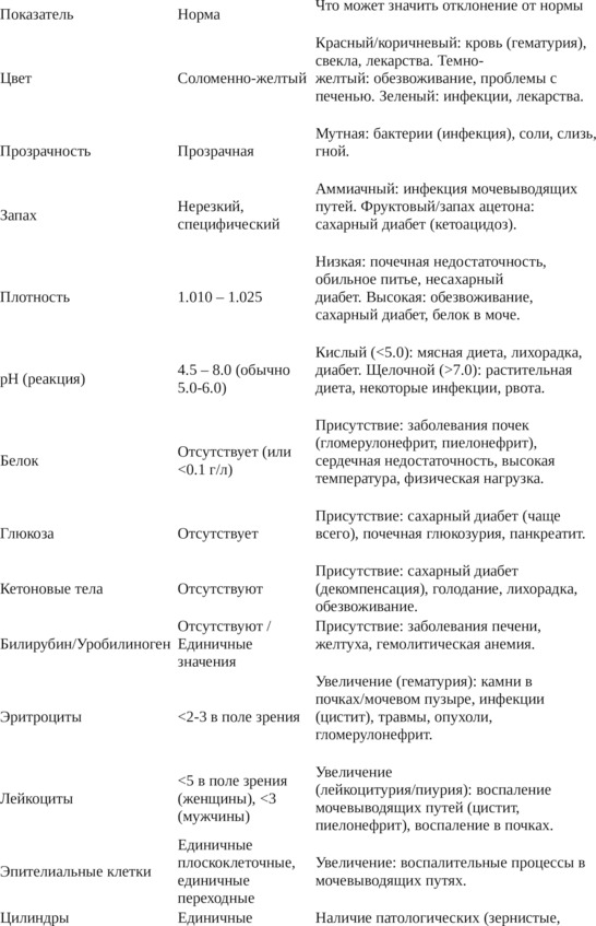 Результаты общего анализа мочи всегда интерпретируются врачом в совокупности. Однако, зная основные значения, вы можете лучше понять, что происходит.