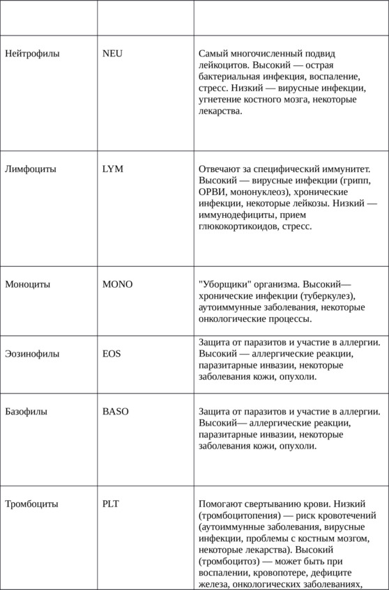 – Сколько в крови эритроцитов, лейкоцитов и тромбоцитов;