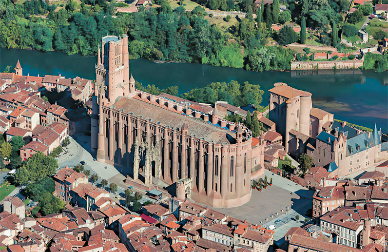 Ужасы войны были еще живы в памяти людей в 1272 году, когда в самом сердце альбигойских земель начали строить собор. На волю случая не полагались. Собор в Альби – это средневековый эквивалент бомбоубежища, башня со стенами толщиной 3,5 метра и с узкими прорезями вместо окон. Единственное, что радует глаз, – нежно-розовый цвет здания.