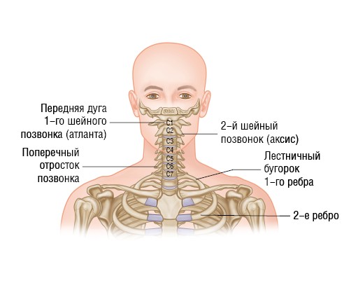 Рисунок 2.14. Область от черепа до грудины. Вид спереди (нижняя и верхняя челюсти не показаны)