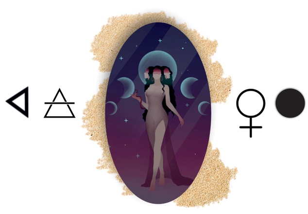 Геката воплощает собой три стадии жизни: юность, зрелость, старость – и указывает нам на неумолимую неизбежность течения времени. Это тонкая форма интерпретации одного из важнейших законов Вселенной о неразрывной связи между прошлым, настоящим и будущим.