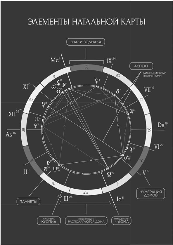 Для работы в рамках этой книги, нам нужно знать три элемента в натальной карте. Представим, что натальная карта – это театр, где: