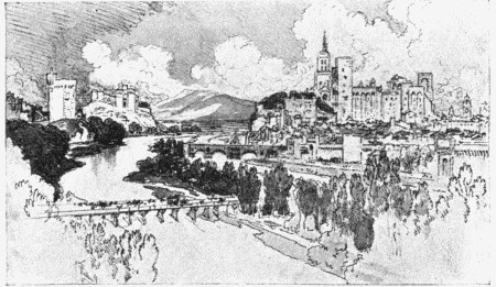 Avignon the Palace of the PopesI did wrong, just above, to speak of my attack on this establishment as the only recreation I took that first wet day; for I remember a terribly moist visit to the former palace of the Popes, which could have taken place only in the same tempestuous hours. It is true that I scarcely know why I should have gone out to see the Papal palace in the rain, for I had been over it twice before, and even then had not found the interest of the place so complete as it ought to be; the fact nevertheless remains that this last occasion is much associated with an umbrella, which was not superfluous even in some of the chambers and corridors of the gigantic pile. It had already seemed to me the dreariest of all historical buildings, and my final visit confirmed the impression. The place is as intricate as it is vast, and as desolate as it is dirty. The imagination has, for some reason or other, to make more than the effort usual in such cases to restore and repeople it. The fact indeed is simply that the palace has been so incalculably abused and altered. The alterations have been so numerous that, though I have duly conned the enumerations, supplied in guide-books, of the principal perversions, I do not pretend to carry any of them in my head. The huge bare mass, without ornament, without grace, despoiled of its battlements and defaced with sordid modern windows, covering the Rocher des Doms and looking down over the Rhone and the broken bridge of Saint-Bénazet (which stops in such a sketchable manner in mid-stream), and across at the lonely tower of Philippe le Bel and the ruined wall of Villeneuve, makes at a distance, in spite of its poverty, a great figure, the effect of which is carried out by the tower of the church beside it (crowned though the latter be, in a top-heavy fashion, with an immense modern image of the Virgin) and by the thick, dark foliage of the garden laid out on a still higher portion of the eminence. This garden recalls faintly and a trifle perversely the grounds of the Pincian at Rome. I know not whether it is the shadow of the Papal name, present in both places, combined with a vague analogy between the churches—which, approached in each case by a flight of steps, seemed to defend the precinct—but each time I have seen the Promenade des Doms it has carried my thoughts to the wider and loftier terrace from which you look away at the Tiber and Saint Peter's.