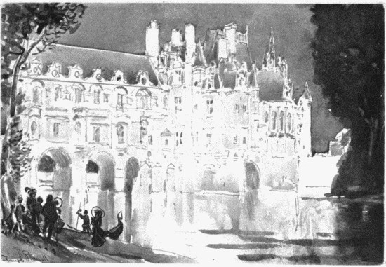 "In 1747," says Jean-Jacques Rousseau in his "Confessions," "we went to spend the autumn in Touraine, at the Château of Chenonceaux, a royal residence upon the Cher, built by Henry II. for Diana of Poitiers, whose initials are still to be seen there, and now in possession of M. Dupin, the farmer-general. We amused ourselves greatly at this fine place; the living was of the best, and I became as fat as a monk. We made a great deal of music and acted comedies."