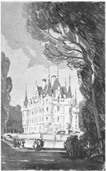 Azay-le-RideauWITHOUT fastidiousness it was fair to declare on the other hand that the little inn at Azay-le-Rideau was very bad. It was terribly dirty and it was in charge of a fat mégère whom the appearance of four trustful travellers—we were four, with an illustrious fourth, on that occasion—roused apparently to fury. I attached great importance to this incongruous hostess, for she uttered the only uncivil words I heard spoken (in connection with any business of my own) during a tour of some six weeks in France. Breakfast not at Azay-le-Rideau therefore, too trustful traveller; or if you do so, be either very meek or very bold. Breakfast not, save under stress of circumstance; but let no circumstance whatever prevent your going to see the great house of the place, which is a fair rival to Chenonceaux. The village lies close to the gates, though after you pass these gates you leave it well behind. A little avenue, as at Chenonceaux, leads to the castle, making a pretty vista as you approach the sculptured doorway. Azay is a most perfect and beautiful thing; I should place it third in any list of the great houses of this part of France in which these houses should be ranked according to charm. For beauty of detail it comes after Blois and Chenonceaux, but it comes before Amboise and Chambord. On the other hand, of course it is inferior in majesty to either of these vast structures. Like Chenonceaux, it is a watery place, though it is more meagrely moated than the small château on the Cher. It consists of a large square corps de logis, with a round tower at each angle, rising out of a somewhat too slumberous pond. The water—the water of the Indre—surrounds it, but it is only on one side that it bathes its feet in the moat. On one of the others stretches a little terrace, treated as a garden, and in front prevails a wide court formed by a wing which, on the right, comes forward. This front, covered with sculptures, is of the richest, stateliest effect. The court is approached by a bridge over the pond, and the house would reflect itself in this wealth of water if the water were a trifle less opaque. But there is a certain stagnation—it affects more, senses than one—about the picturesque pools of Azay. On the hither side of the bridge is a garden overshadowed by fine old sycamores—a garden shut in by greenhouses and by a fine last-century gateway flanked with twin lodges. Beyond the château and the standing waters behind it is a so-called parc, which, however, it must be confessed, has little of park-like beauty. The old houses—a large number—remain in France; but the old timber does not remain, and the denuded aspect of the few acres that surround the châteaux of Touraine is pitiful to the traveller who has learned to take the measure of such things from the country of "stately homes." The garden-ground of the lordly Chaumont is that of an English suburban villa; and in that and in other places there is little suggestion, in the untended aspect of walk and lawns, of the gardener the British Islands know. The manor as we see it dates from the early part of the sixteenth century; and the industrious Abbé Chevalier, in his very entertaining though slightly rose-coloured book on Touraine,2 speaks of it as "perhaps the purest expression of the belle Renaissance françoise." "Its height," he goes on "is divided between two storeys, terminating under the roof in a projecting entablature which imitates a row of machicolations. Carven chimneys and tall dormer windows, covered with imagery, rise from the roofs; turrets on brackets, of elegant shape, hang with the greatest lightness from the angles of the building. The soberness of the main lines, the harmony of the empty spaces and those that are filled out, the prominence of the crowning parts, the delicacy of all the details, constitute an enchanting whole." And then the Abbé speaks of the admirable staircase which adorns the north front and which, with its extension inside, constitutes the principal treasure of Azay. The staircase passes beneath one of the richest of porticos—a portico over which a monumental salamander indulges in the most decorative contortions. The sculptured vaults of stone which cover the windings of the staircase within, the fruits, flowers, ciphers, heraldic signs, are of the noblest effect. The interior of the château is rich, comfortable, extremely modern; but it makes no picture that compares with its external face, about which, with its charming proportions, its profuse yet not extravagant sculpture, there is something very tranquil and pure.