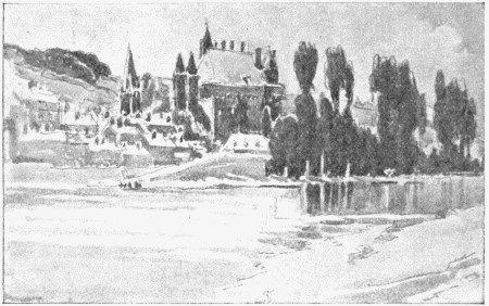 LochesTHE consequence of my leaving to the last my little mention of Loches is that space and opportunity fail me; and yet a brief and hurried account of that extraordinary spot would after all be in best agreement with my visit. We snatched a fearful joy, my companion and I, the afternoon we took the train for Loches. The weather this time had been terribly against us: again and again a day that promised fair became hopelessly foul after lunch. At last we determined that if we could not make this excursion in the sunshine we would make it with the aid of our umbrellas. We grasped them firmly and started for the station, where we were detained an unconscionable time by the evolutions, outside, of certain trains laden with liberated (and exhilarated) conscripts, who, their term of service ended, were about to be restored to civil life. The trains in Touraine are provoking; they serve as little as possible for excursions. If they convey you one way at the right hour, it is on the condition of bringing you back at the wrong; they either allow you far too little time to examine the castle or the ruin, or they leave you planted in front of it for periods that outlast curiosity. They are perverse, capricious, exasperating. It was a question of our having but an hour or two at Loches, and we could ill afford to sacrifice to accidents. One of the accidents, however, was that the rain stopped before we got there, leaving behind it a moist mildness of temperature and a cool and lowering sky which were in perfect agreement with the grey old city. Loches is certainly one of the greatest impressions of the traveller in central France—the largest cluster of curious things that presents itself to his sight. It rises above the valley of the Indre, the charming stream set in meadows and sedges, which wanders through the province of Berry and through many of the novels of Madame George Sand; lifting from the summit of a hill, which it covers to the base, a confusion of terraces, ramparts, towers, and spires. Having but little time, as I say, we scaled the hill amain and wandered briskly through this labyrinth of antiquities. The rain had decidedly stopped and, save that we had our train on our minds, we saw Loches to the best advantage. We enjoyed that sensation with which the conscientious tourist is—or ought to be—well acquainted and for which, at any rate, he has a formula in his rough-and-ready language. We "experienced," as they say (most irregular of verbs), an "agreeable disappointment." We were surprised and delighted; we had for some reason suspected that Loches was scarce good.