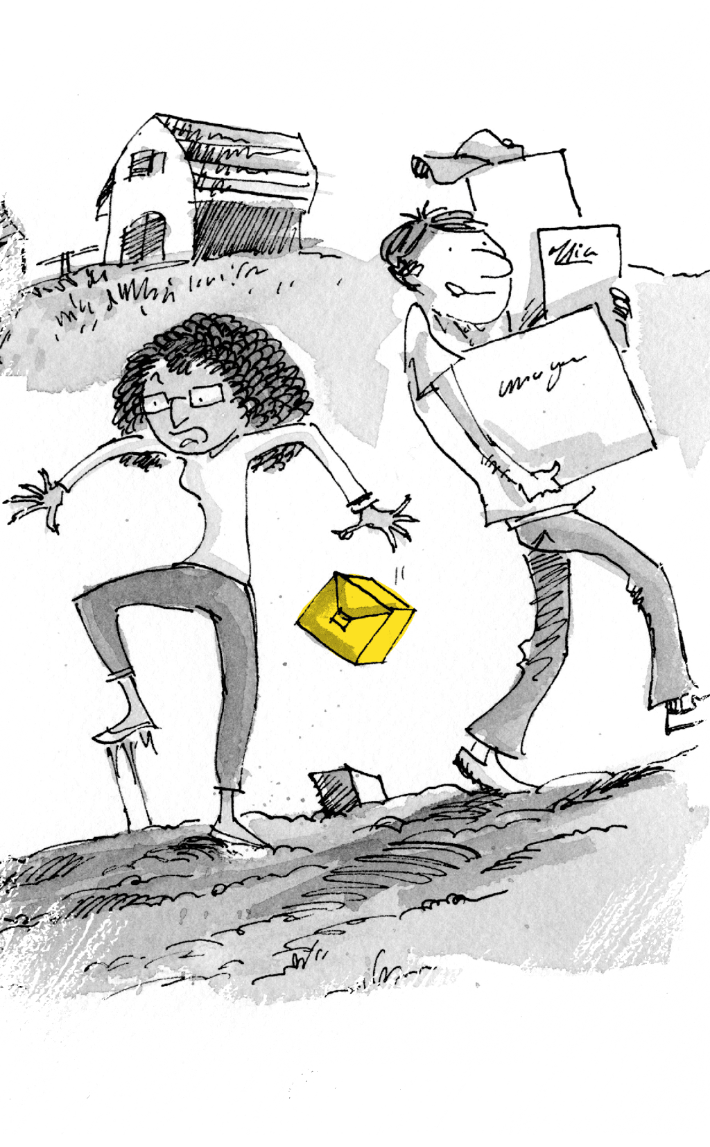 Дорогие господа, которые на самом деле не отправляют каталоги фермерам, мама говорит, что не надо объяснять людям, что ты о них думаешь, сгоряча. Но я наверняка ещё долго буду кипеть от злости, так что откладывать не имеет смысла. Возможно, вы решили, что я просто какая-то малявка без денег и что родители всё равно не разрешат мне держать кур. Вот и посчитали, что посылать мне каталог – только зря бумагу тратить. Я знаю, что моё письмо до вас дошло, потому что Грегори, который развозит почту, пообещал доставить его вам, хотя на вашем рекламном проспекте и не была указана улица и всё прочее, – вот как работают другие! Грегори не из тех, кто вечно всё путает, уж он, будьте уверены, доставит почту и в гололёд, и в снег, и в дождь – он-то к своей работе относится серьёзно. Всегда приносит почту без задержек.