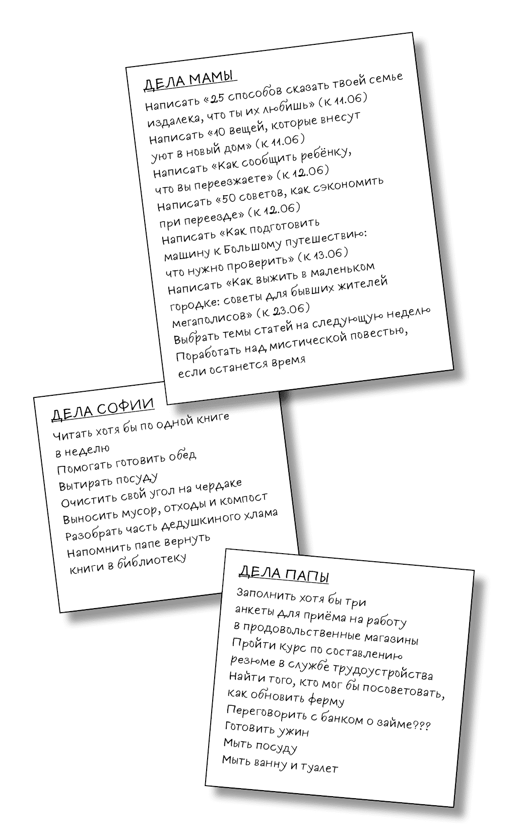 P. P. P. S. Мама поручила мне напечатать список дел на следующую неделю. Видишь? Мы все без дела не сидим. Не знаю почему, но вечером мне всё-таки взгрустнулось.