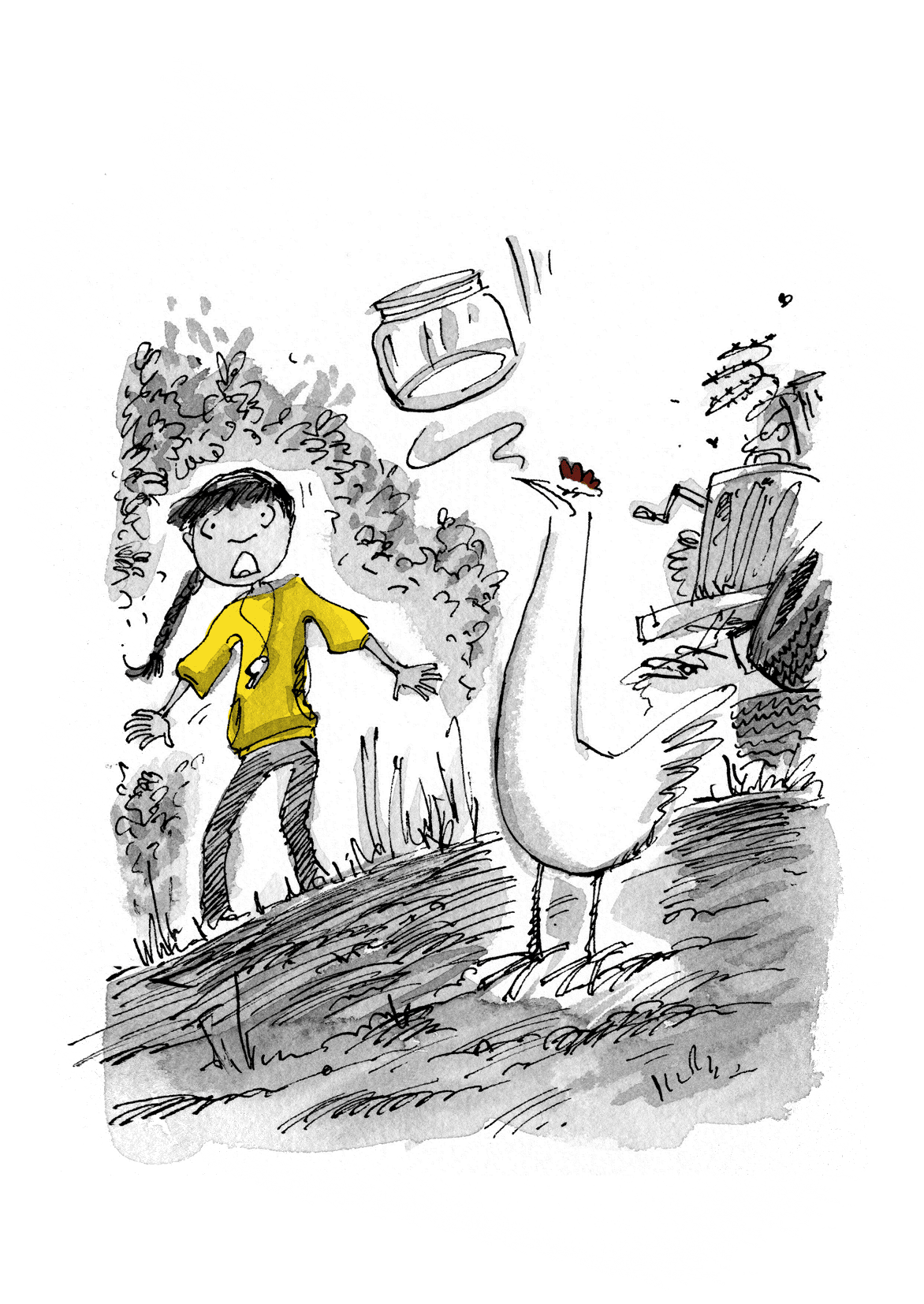 Я заставила себя подойти по траве к домику и отпереть дверцу. И тут у меня перехватило дыхание. Внутри на жёрдочке преспокойно сидела Генриетта. Она открыла один глаз и посмотрела на меня. Я развернулась и припустила прочь к дому. Добежав, я заперла за собой дверь. Согласись, я поступила разумно.