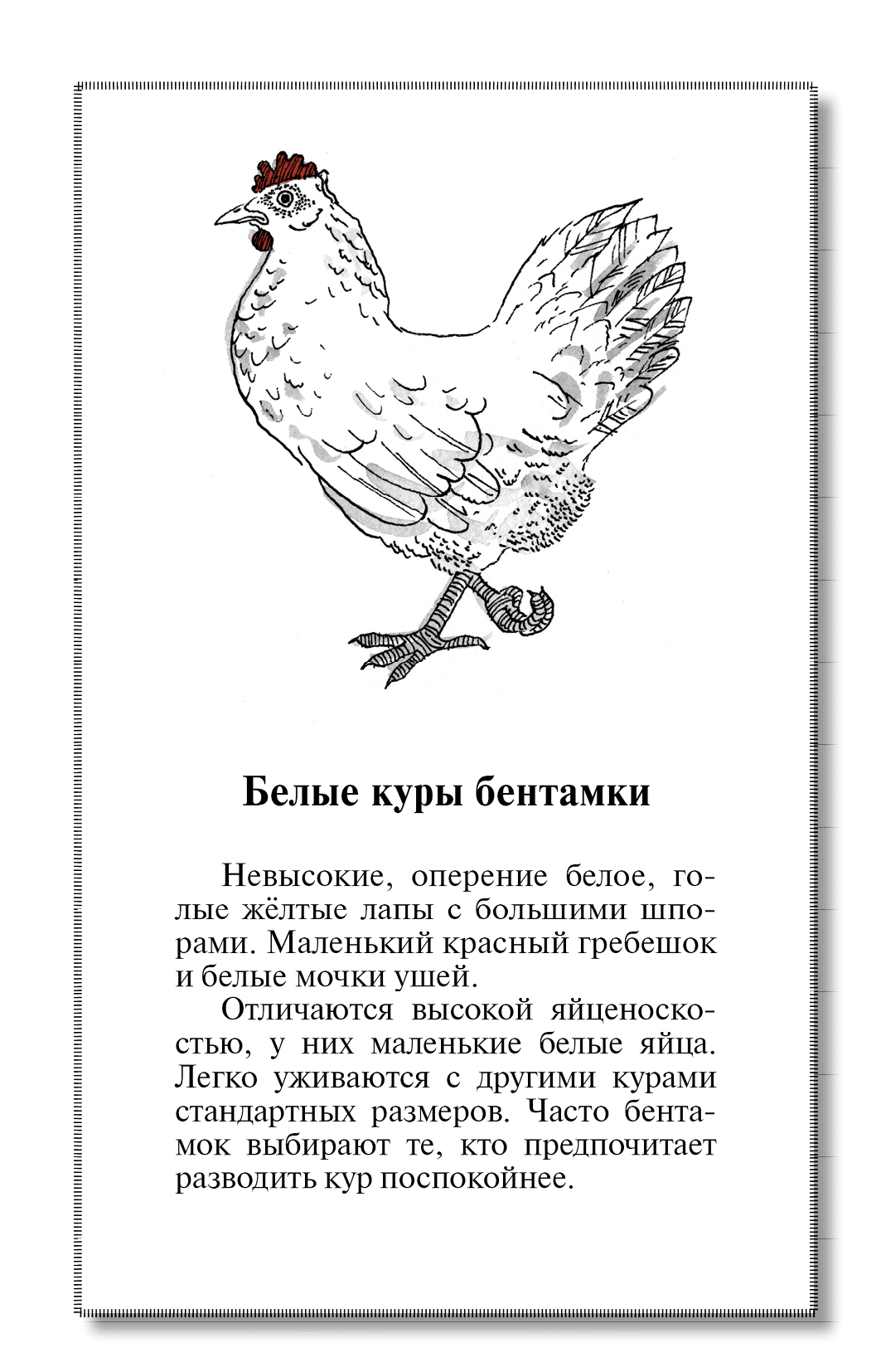 Если она жила у моего двоюродного дедушки Джима, то, наверное, я должна оставить её себе? Я очень ответственная. Нет ли у тебя какого-нибудь руководства или пособия? Про особенных кур? Я уже взяла в библиотеке книгу об обычных курах.
