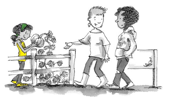 В студенческом саду было так здорово! Студенты сами ухаживают за фруктами и овощами, собирают урожай и раздают тем, кому не хватает денег на еду. К ним даже кур привезли в специальной клетке! Я объяснила Лупе, какая это порода, и о чём они, наверное, кудахчут, переговариваясь между собой. И она наконец-то улыбнулась.
