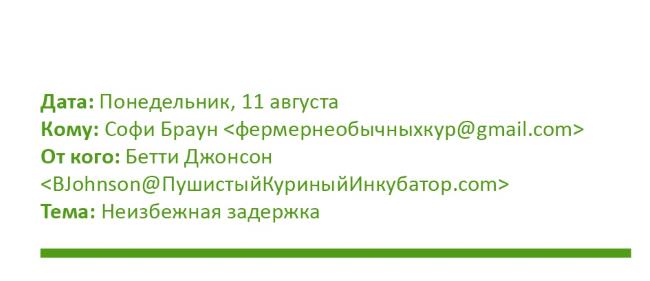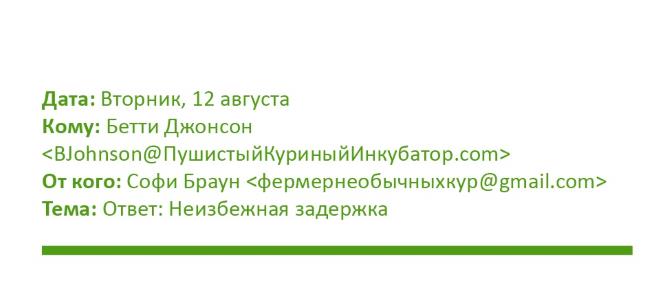 Дорогая Бетти, хорошо. Сейчас мой инкубатор и так заполнен, а у меня начинаются занятия в школе, поэтому, даже если отправка задержится на пару месяцев – я не против. Я рада, что ваши куры смогут помочь зоопарку. Сообщите мне, когда яйца будут готовы, и я предупрежу Грегори, нашего почтальона. Он умеет бережно обращаться с яйцами.