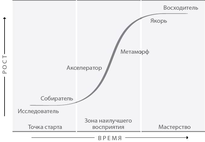 Каждый освоенный навык, каждый новый вызов принимает форму определенной кривой обучения. Мы можем точно определить, на каком этапе личностного роста мы находимся; мы можем решить, каким будет наш следующий шаг. Мы можем использовать эту модель для управления собственным ростом или чтобы помогать расти другим.