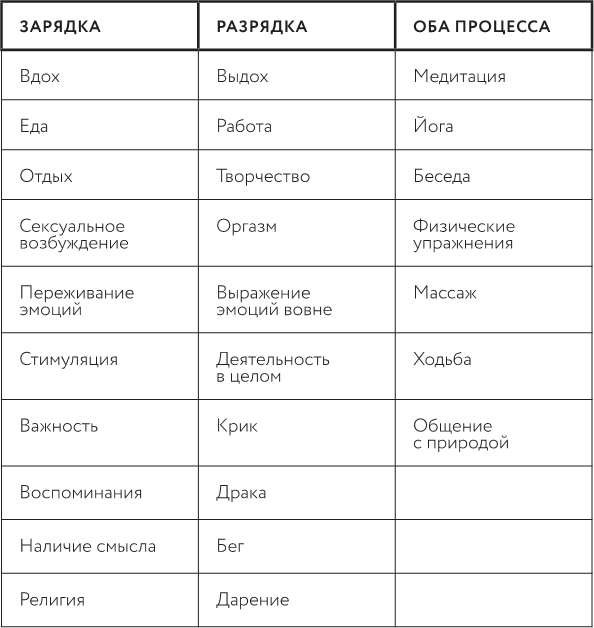 Когда не удается успешно чередовать зарядку и разрядку или когда приходится слишком долго пребывать в одном из этих крайних состояний, возникает ощущение, что заряд или чересчур велик, или слишком мал. В первом случае у человека слишком много энергии для его тела, и он не может разрядиться. Во втором – он чувствует постоянную усталость и нуждается в притоке энергии, чтобы пополнить ее запасы.