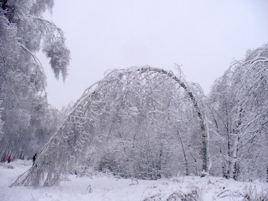 Но недолго стояли морозы, прошла неделя, и они сменились потеплением. Снова разыгралась метель, которая неистовствовала, не переставая, три дня и три ночи. Все это время лесные школы были закрыты, ведь не может малышня в такую погоду выходить из дома. Метели сменил небольшой морозец, показалось солнце. За эти дни так много выпало снега, что лес преобразился. Зверята вышли утром из домов и растерялись, они не могли понять, где находятся. Бор из зеленого стал белым – на еловых и сосновых лапах лежали шапки снега. Преобразились березы, осины и другие деревья – по их веткам поползли снежные змеи. Невысокие кусты превратились в сугробы.