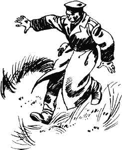 Николай не сразу понял – заметил ли его преступник или просто случайно пошёл быстрее. Но скоро сообразил: заметил. Преступник всё ускорял и ускорял шаг. А улица, как назло, была пустынна. Самому брать преступника очень рискованно. И упустить нельзя ни в коем случае.