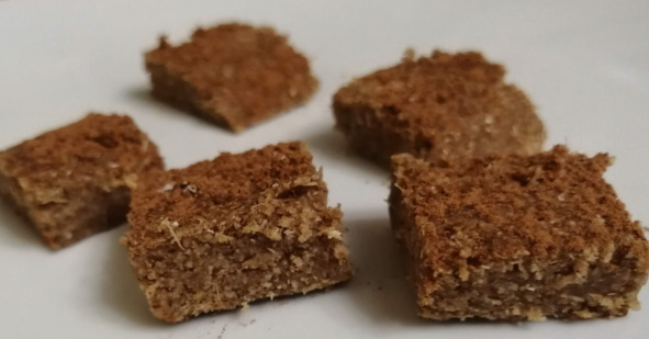 – Ореховый жмых тщательно отжимает через сито, чтобы он стал суше, и добавляем кэроб и растопленное на водяной бане кокосовое масло. Замешиваем тесто.