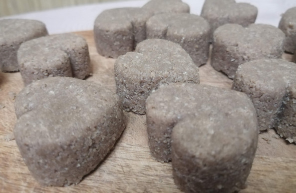 – Стружки добавляем столько, чтобы можно было слепить круглые шарики-печеньки, размером меньше, чем мячик для настольного тенниса. Стружки лучше не доложить, чем переложить, чтобы печенье не получились слишком плотным.