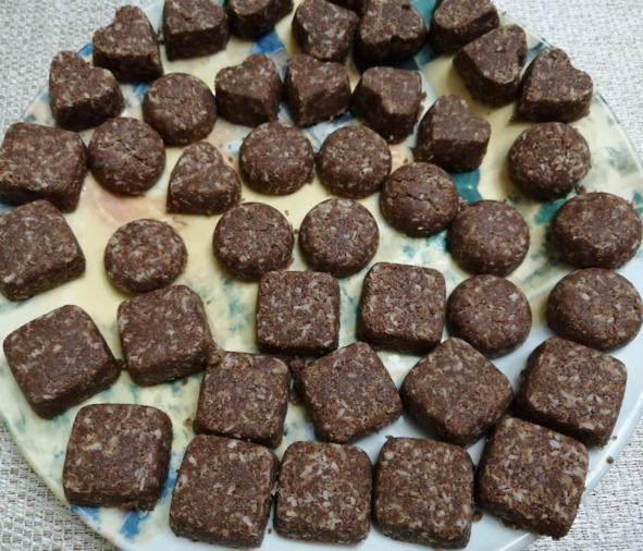 – Формируем конфеты и убираем в холодильник на час. Конфеты получаются на вкус, как настоящее печенье.