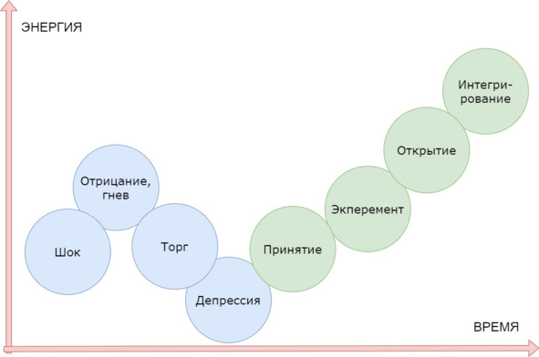 Твоему сознанию надо пройти определенные стадии, чтобы понять и принять новые изменения и начать снова жить по-новому. Вот они: