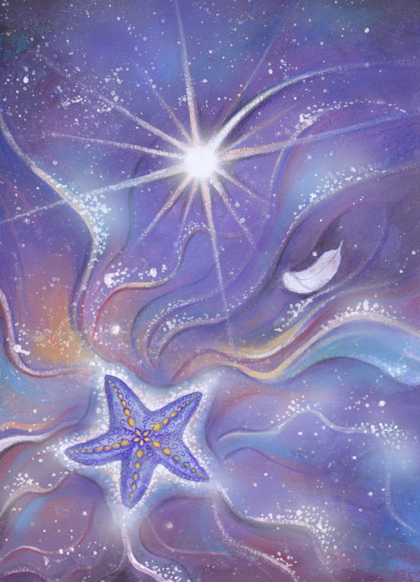Это было самое чудесное время: солнце тонуло в бескрайнем океане, и на небе загорались маленькие светлячки. Я подплывал ближе к берегу, чтоб было лучше видно, и наблюдал. Там, в далёком и непонятном для морской звезды мире, творились чудеса.