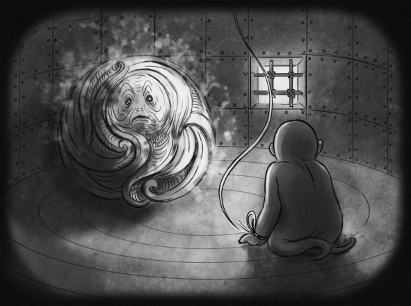 Жи вскоре поняли, что им нечего противопоставить безумному натиску, сметающему всё на своём пути. Страх разогнал их по углам, и наконец Вилька остался один против сферы, в которой отражался искривлённый зал со жмущимися по углам, трясущимися жи. Отчаяние одиночества и беспомощности разрывало его на части…
