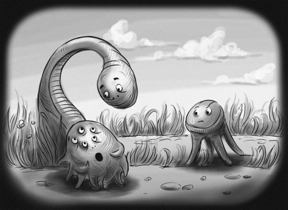 На этот раз он оказался, почему-то не в резервуаре, а на какой-то незнакомой поляне. Вращая смотрелками во все досягаемые стороны, он снова не обнаружил поблизости никакого Булька. В отчаянии поняв, что не сможет просто сдвинуться с места, Плывун, слегка приплюснувшись, опустил плавники и замер. Ничего страшнее невозможно было представить: он заблудился!