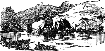 За устьем, в широкой части фиорда, прилив поднимал воду спокойно, без волн. Кормчий Эстольд находился на своем месте, на короткой кормовой палубе. Двое викингов, учеников и помощников Эстольда, держали длинное правило руля, направляя драккар по кратким приказам кормчего.