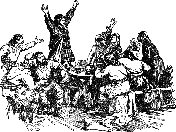 Хороший хозяин умеет предусмотреть также и общеизвестные опасности пира. Среди гостей были размещены викинги Ската. Хотя это было немалым подвигом но они лишь притворялись, что пьют. Их настоящей задачей было следить за порядком, охраняя гостей от них самих.