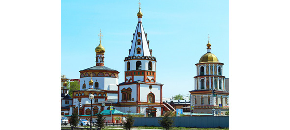 И вот, мы стоим у одного из главных храмов Иркутско-Ангарской епархии и первой церкви, построенной за пределами острога – это Богоявленский кафедральный собор (ул. Сухэ-Батора, 1А). По сей день это одна из самых необычных культовых построек в России.