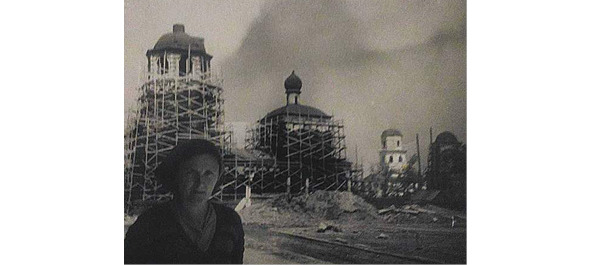Сразу за стелой можно увидеть небольшую часовню, построенную по инициативе администрации 4 октября 2000 г. на месте алтаря уничтоженного в 1932 г. Казанского кафедрального собора (ул. Ленина, 1Б). Она является уменьшенной копией одного из куполов храма. В основание постройки заложены камни из фундамента утраченной церкви.