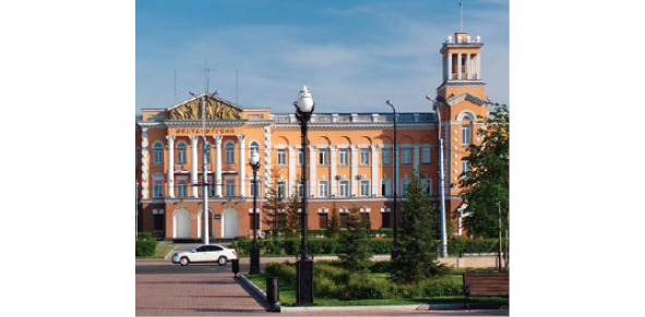 Давайте обойдем эту площадь по кругу. Первым справа встречает уже знакомое нам здание правительства Иркутской области. За ним высится колоннада здания единственного за Уралом института иностранных языков (ИФИЯМ), которое было возведено по проекту талантливого советского архитектора И. Г. Ефимова в 1950 г. (ул. Ленина, 8а). В Иркутске старейшие в Сибири традиции преподавания иностранных языков. Даже первая школа в истории города, открытая архимандритом Анатолием Платковским в 1724 г., была «русско-мунгальской» и сразу готовила переводчиков с монгольского. А в 1754 г. в городе была открыта первая в Сибири и вторая в мире школа японского языка.